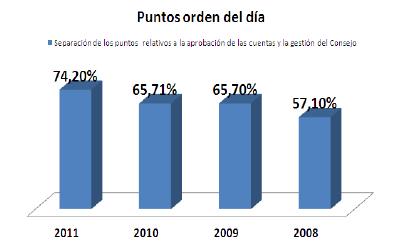 En esta última edición hemos observado un aumento en la claridad en la aportación de las fechas relativas a la celebración de las Juntas. Solo tres compañías no especificaron cuando tendría lugar el evento. En cuanto al Orden del Día aumentó el número de empresas que separan la aprobación de resultados de la gestión del Consejo. Seguiremos hablando de buenas prácticas en la comunicación con accionistas minoritarios.